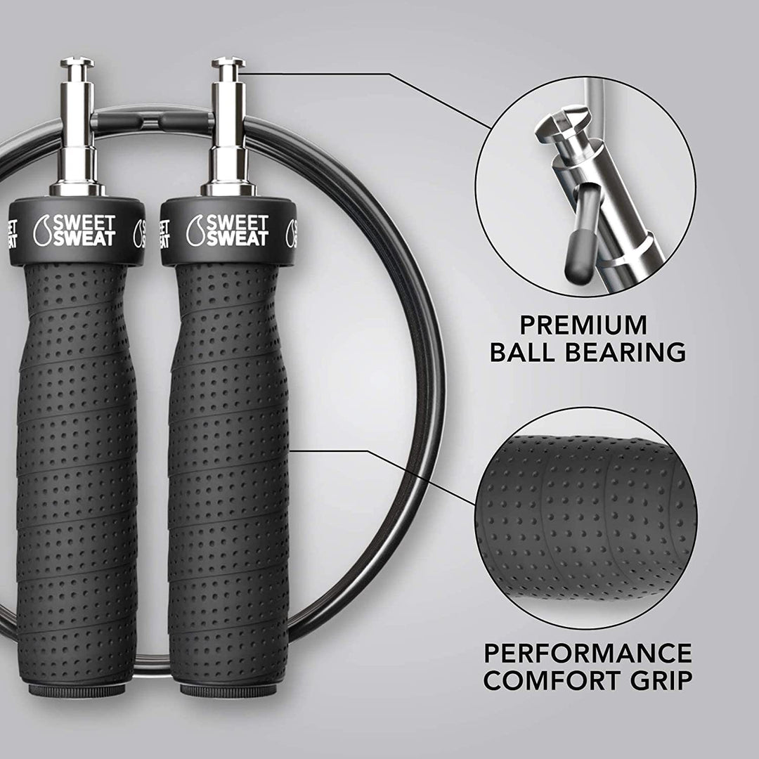The Sweet Sweat® Weighted Jump Rope is the go-to equipment for men and women who do HIIT, Muay Thai, MMA, or Boxing. No matter what your sport the combination of weight and jumping will rock your body in the best way possible!