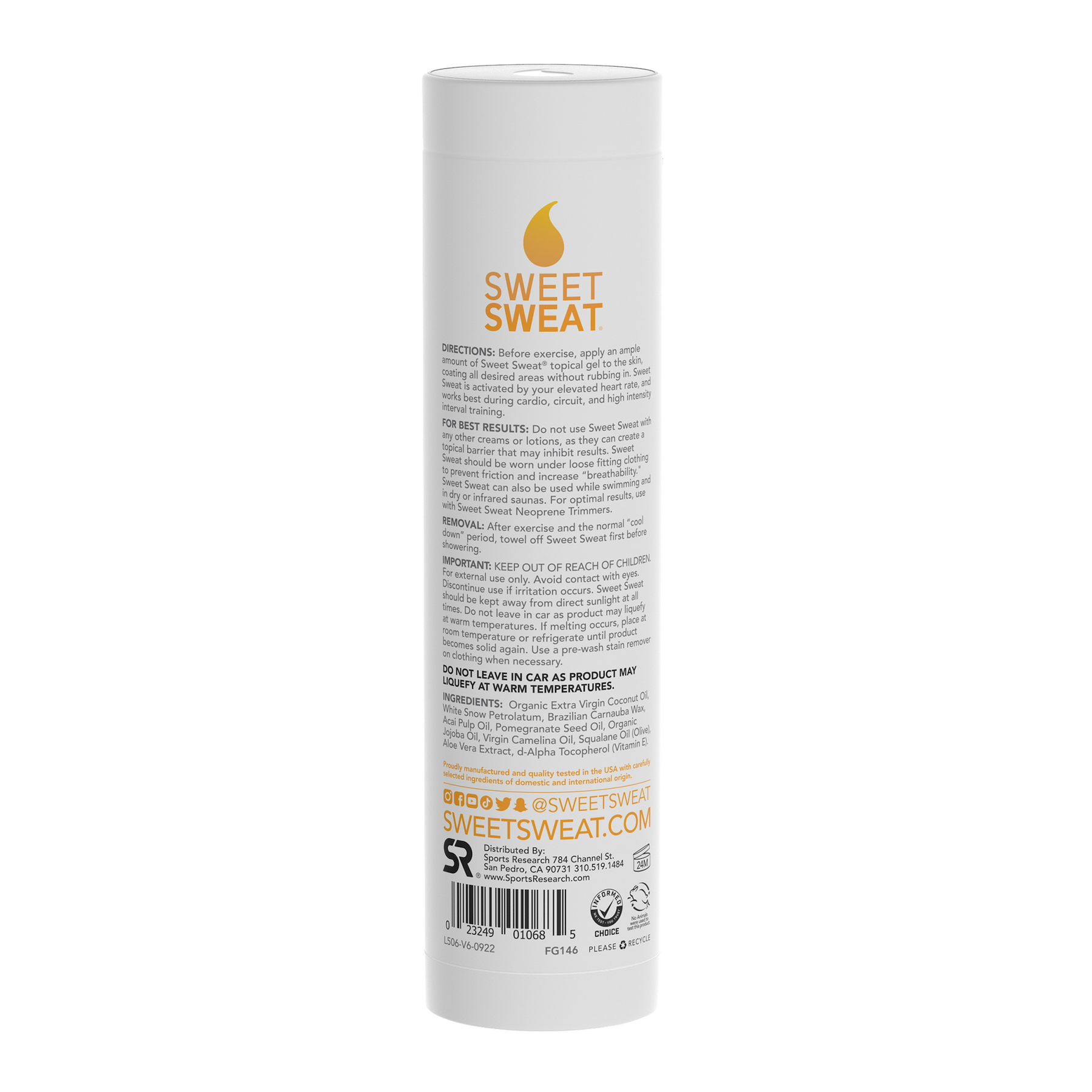 Apply an ample amount to the skin before exercise, and with your elevated heart rate, Sweet Sweat will begin to activate - promoting an additional increase in circulation to areas applied.