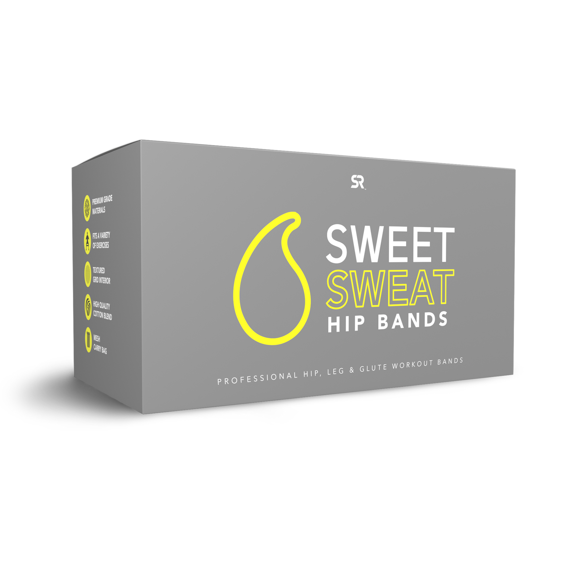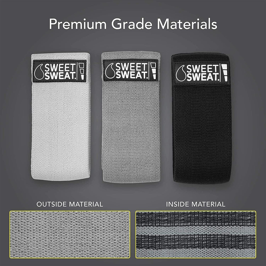 Intensify all your leg and butt workouts with Sweet Sweat Hip Resistance Band. Use it to warm up, activate your glutes and add heavy duty resistance to your favorite lower body exercises such as squats, hip thrusts and more!
