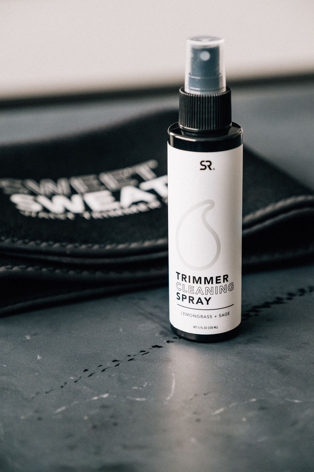 Just shake and spray. After you’ve sprayed the entire Trimmer area, let it sit for five minutes— go take your shower, wash your face, or sit on the floor and give your legs some reprieve—then wipe it clean.